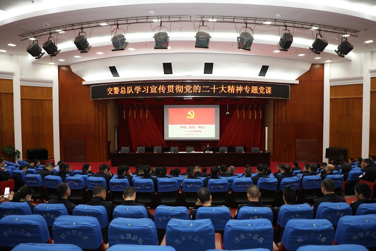 为深入学习贯彻党的二十大精神,将所学所思、所悟所获运用到公安交管工作中,以更高标准更严要求推动公安交管工作高质量发展,4月11日,交警总队邀请省社科院城市文化研究室主任郭丹为总队机关全体民警讲授了题为《开新篇、强信念、聚民心——二十大开启新征程》的专题党课。交警总队总队长蒋建湘、交警总队政委杨能全程出席。