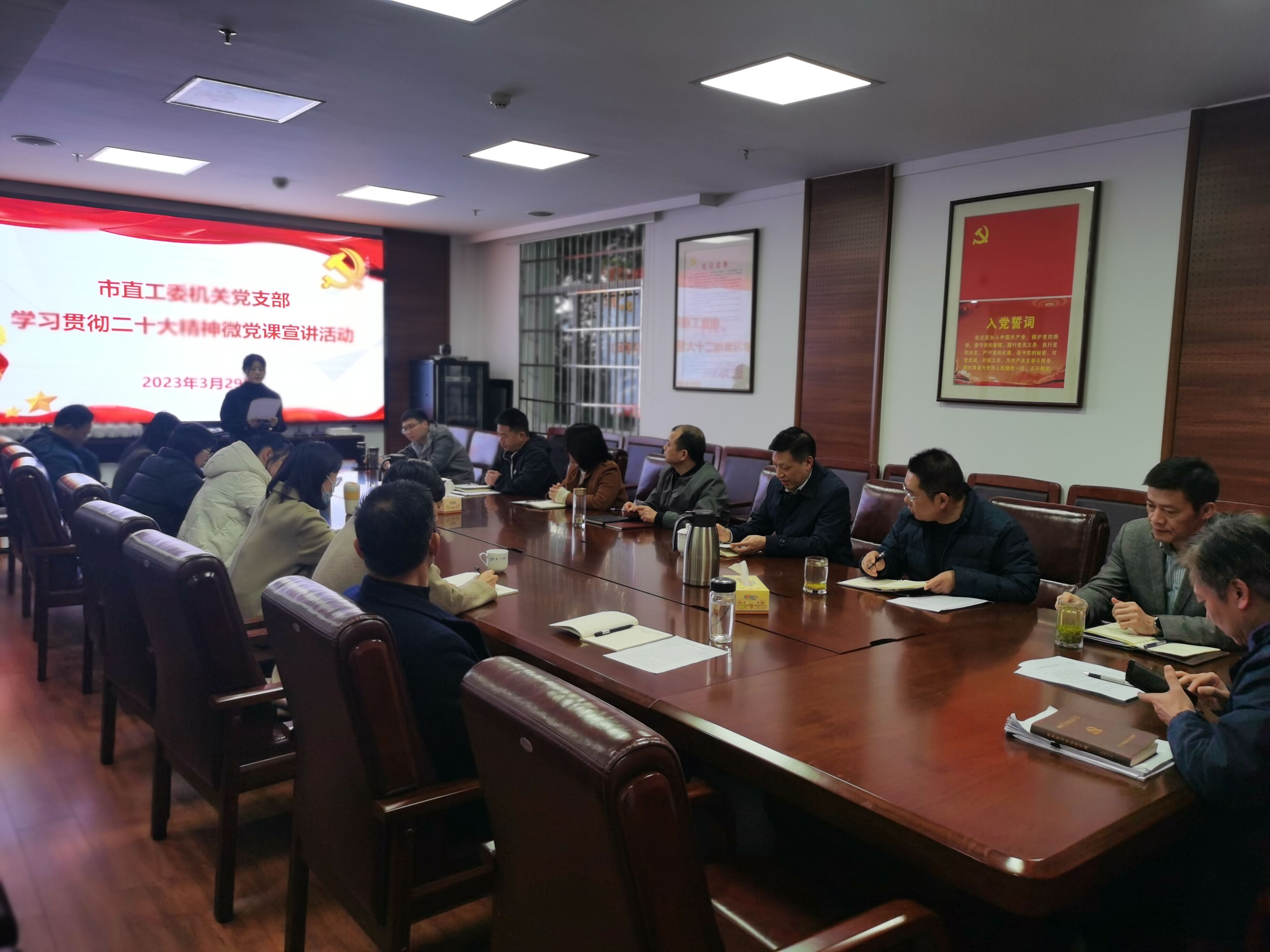 为深入学习宣传贯彻党的二十大精神和习近平新时代中国特色社会主义思想,3月29日下午,常德市直工委机关党支部举办学习贯彻党的二十大精神微党课宣讲活动,以实际行动抓实“一月一课一片一实践”活动,助力党员教育和党内组织生活提质增效。