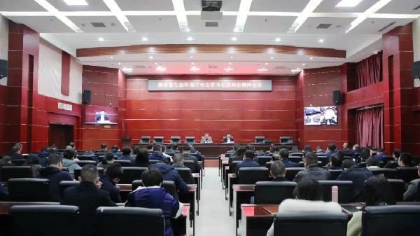 刘群指出,这次全国“两会”,是在全面贯彻党的二十大精神开局之年、深入推进中国式现代化的关键时期召开的一次重要会议。习近平总书记在会议期间发表了一系列重要讲话,为谋划推进生态环境工作提供了强大思想武器和科学行动指南。全省系统各级要深刻领会全国“两会”特别是习近平总书记重要讲话的历史意义、深邃内涵和实践要求,以实际行动坚决拥护“两个确立”、坚决做到“两个维护”。要把学习宣传贯彻全国“两会”精神作为当前和今后一个时期的重要政治任务,与学习贯彻习近平新时代中国特色社会主义思想和党的二十大精神结合起来,立足湖南生态环境工作实际,抓好十个方面的重点工作,落实八大机制,统筹推进四大任务、四个专项行动,打好打赢八大标志性战役,深入打好污染防治攻坚战、持久战、翻身仗,在国家成效考核中进档进位。要聚焦生态环境保护中心工作,构建全省系统“党建红引领生态绿”品牌体系,强化党建赋能,释放绿色力量。坚决扛牢管党治党政治责任,坚持全面从严、一严到底,纵深推进清廉环保建设,以一往无前的奋斗姿态、只争朝夕的精神状态,切实将全国“两会”精神转化为建设美丽湖南的生动实践。