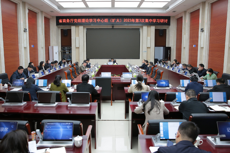 3月15日,省商务厅党组开展理论学习中心组(扩大)2023年第3次集中学习研讨。厅党组书记、厅长沈裕谋主持会议并讲话。