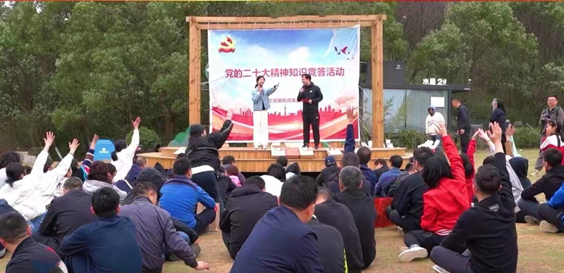 在开阔轻松的南湖大烟囱露营地,组织开展了党的二十大精神知识竞答活动。大家准备充分、你争我抢、踊跃作答、高潮迭起,充分反映了市发改委党员干部求真务实的学习状态和奋发向上的精神风貌。通过知识竞答活动,进一步引领了党员干部职工把思想和行动统一到党的二十大精神上来,把力量凝聚到党的二十大确定的各项目标任务上来,立足岗位、再创佳绩,在奋力推进名副其实的省域副中心城市建设和全市高质量发展中贡献发改力量。