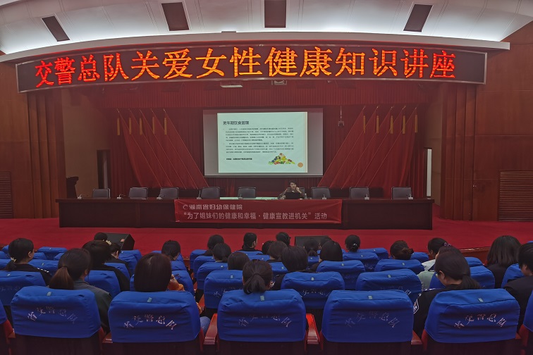 3月6日,总队举办了庆“三八”关爱女性健康知识讲座,特别邀请了中国医师协会妇产科专业委员会会员、中华女医师协会会员、湖南省妇女保健与优生优育协会委员、湖南省妇幼保健院内分泌中心副主任雷蕾授课,交警总队政治部副主任孟蓉主持讲座。雷蕾专家科普了常见女性疾病的早期预防和自我诊断的相关常识,重点讲述了女性更年期综合症的特点、表现、用药、治疗等,并建议在座女性同胞,平时生活中要注意预防和养成定期体检的习惯。现场咨询环节,与会女同志就一些自身问题进行了提问,雷蕾专家都耐心作了解答并给出了合理建议。