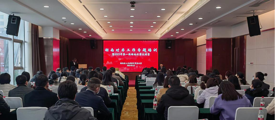近日,省委外事办举办湖南对非工作专题培训暨2023年第一期湖南外事大讲堂,邀请外交部非洲之角事务特使薛冰作专题讲座。省委外事办、长沙市及所辖区县外事办,部分省直、长沙市直单位干部100余人参加,省委外事办主任徐正宪主持会议。
