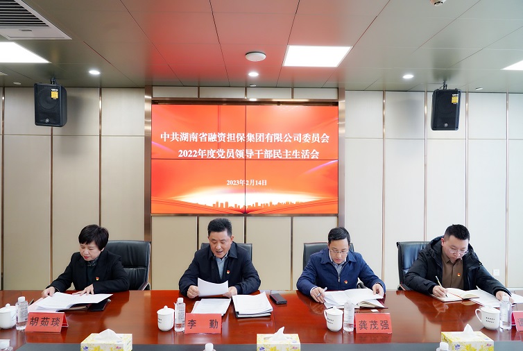 按照党中央部署要求和省委统一安排,2月14日,湖南省融资担保集团党委召开2022年度党员领导干部民主生活会,集团党委书记、董事长李勤主持会议并作总结讲话。省财政厅金融处副处长龚茂强、人事教育处四级主任科员谭修邦到会指导。集团党委班子成员参加会议,集团工会主席、相关部室负责人列席会议。