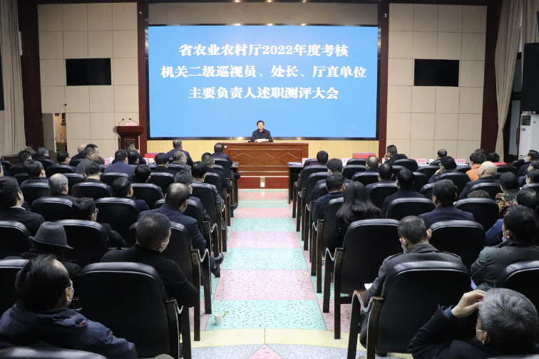 2月8日,省农业农村厅召开2022年度考核机关二级巡视员、处长、厅直单位主要负责人述职测评大会。省委农办主任,省农业农村厅党组书记、厅长袁延文主持会议并讲话。