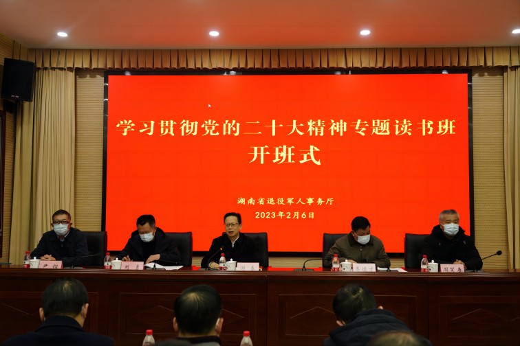 2月6日上午,为期5天的省退役军人事务厅学习贯彻党的二十大精神读书班开班,厅党组书记、厅长谢春作开班动员讲话,厅党组成员、副厅长易德才主持开班式,在家厅领导出席。
