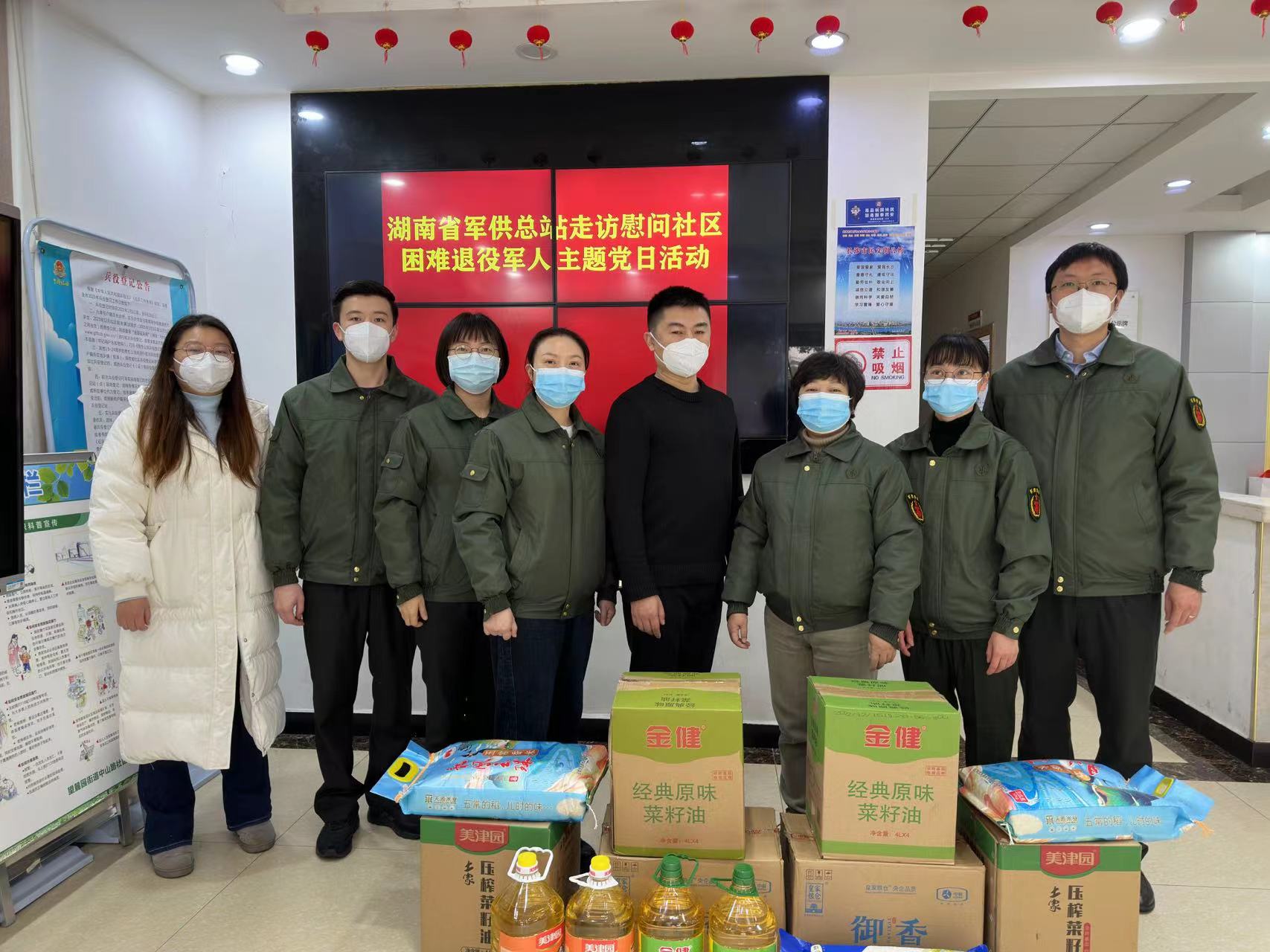 2023年1月12日,正值农历小年前夕,湖南省军供总站党员志愿者来到长沙市开福区望麓园街道中山路社区,为部分生活困难的退役军人军属送去了慰问物资和春节问候。
