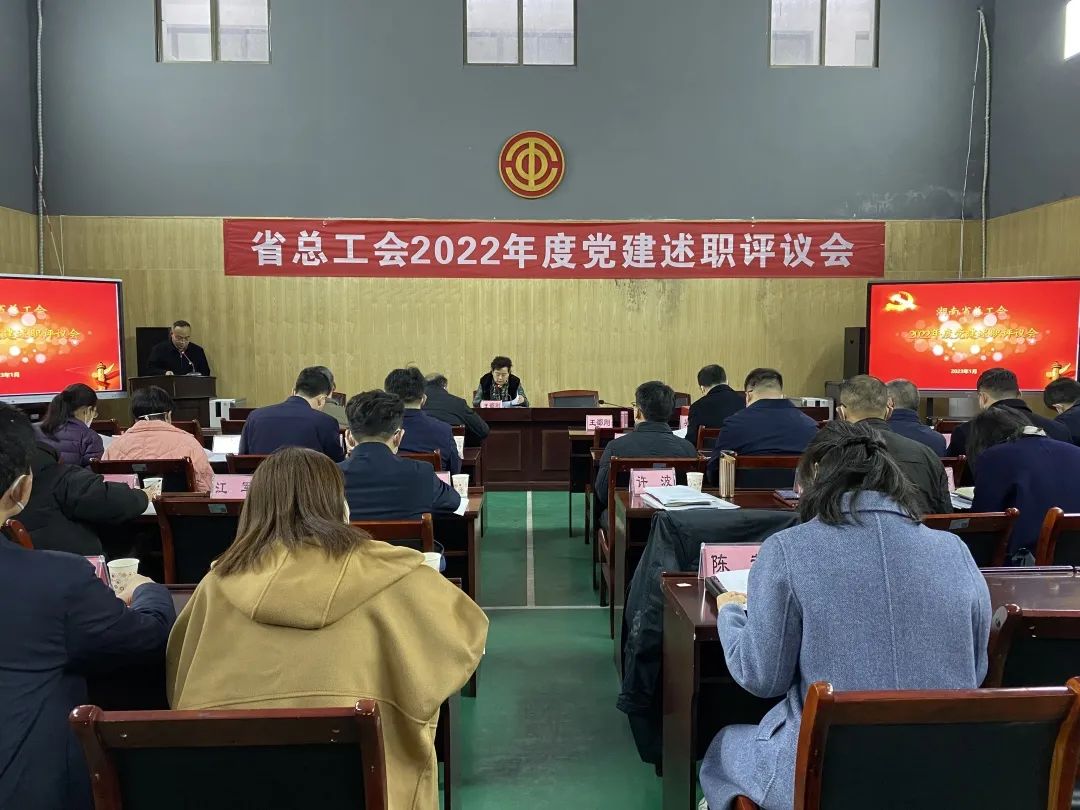 省总工会召开2022年度党建述职评议会,对2022年省直管产业工会、省总机关和直属单位基层党组织党的建设工作进行述职评议并开展测评。省总工会党组副书记、副主席、机关党委书记王邵刚主持会议并作点评讲话。