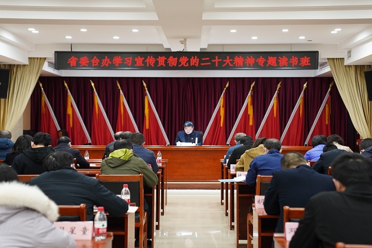 此次读书班安排4天时间在元旦后的一周内完成,采取个人自学、集中学习、专题辅导、宣讲报告、集中汇报、交流研讨等形式,组织全体干部职工系统化、分层次、全覆盖地学习贯彻党的二十大精神,切实让党的二十大精神在省委台办落地生根、开花结果。
