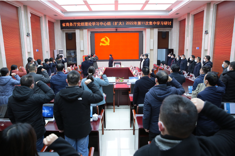 12月29日,省商务厅召开党组理论学习中心组(扩大)2022年第11次集体学习,重温入党誓词、集中学习贯彻《中国共产党章程(修正案)》,厅党组书记、厅长沈裕谋主持并讲话。