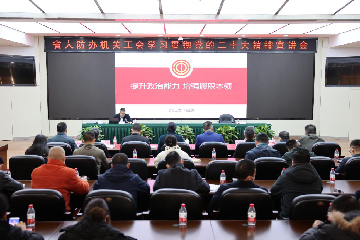 为进一步推动党的二十大精神走深走实,12月13日,省国动办(人防办)机关工会举行学习贯彻党的二十大精神宣讲会,办党组成员、副主任谢晓清主持会议,办党组成员、副主任侯建斌出席会议。
