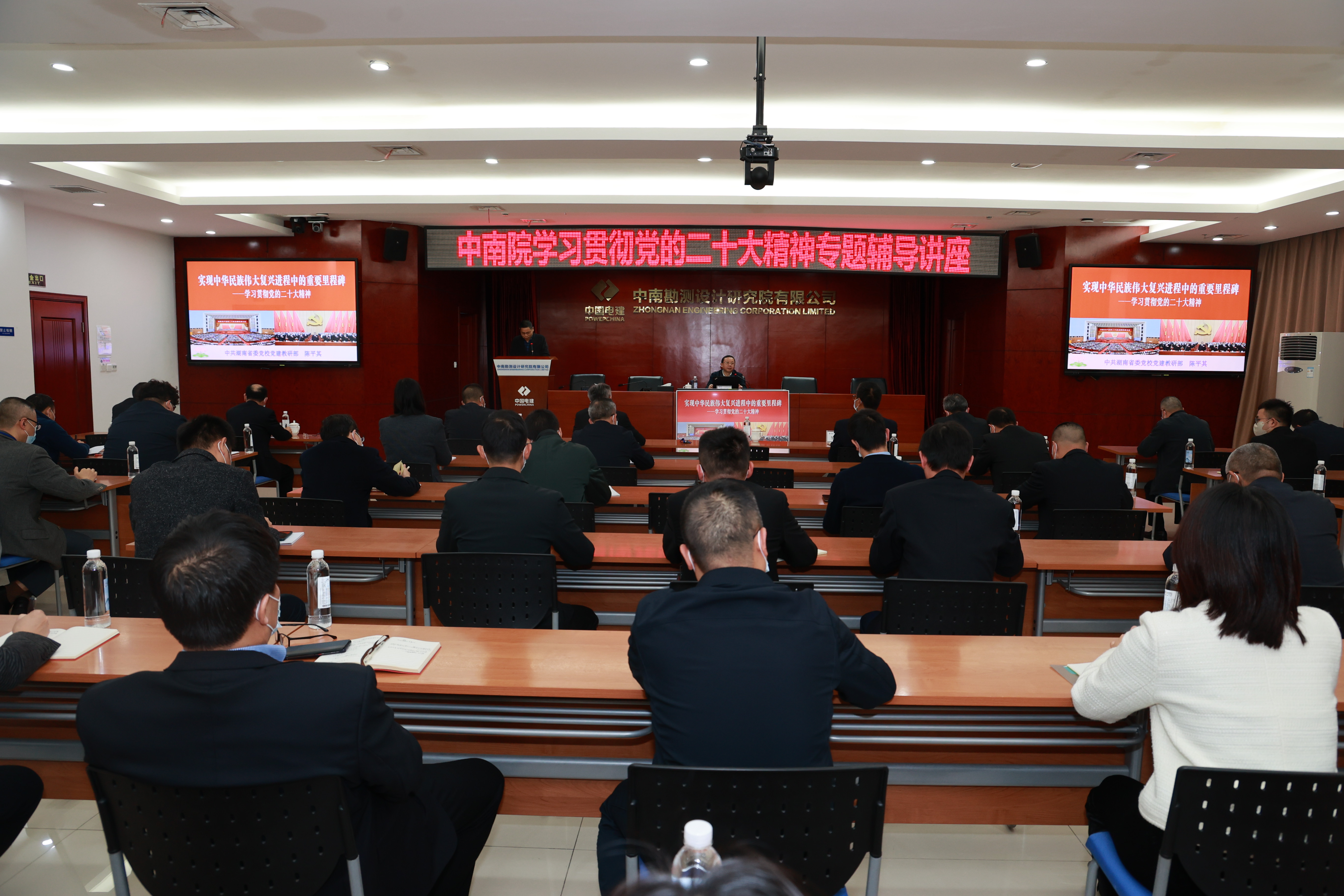 为深入学习宣传贯彻党的二十大精神,更好地把广大党员干部职工的思想和行动统一到党的二十大精神上来,11月22日下午,中南院党委举办学习贯彻党的二十大精神专题辅导讲座,邀请湖南省委党校陈平其教授做专题授课。中南院党委书记、董事长冯树荣主持讲座并对下阶段学习贯彻工作提出要求,在长领导班子成员参加学习。