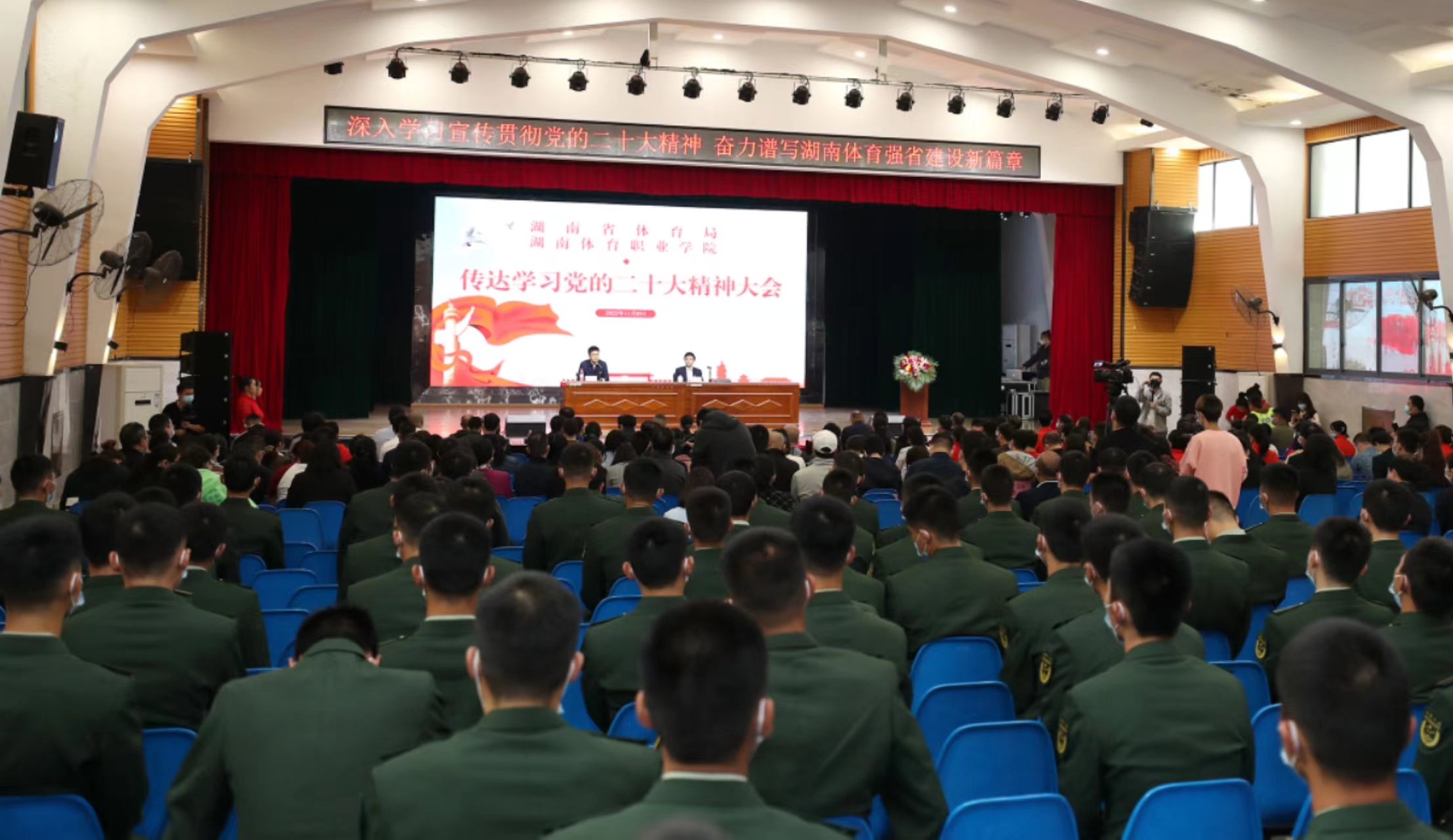 为深入学习宣传贯彻党的二十大精神,激励教练员、运动员、教师、学生把思想和行动统一到党的二十大精神上来,继湖南省体育局传达学习党的二十大精神大会后,党的二十大代表、省体育局党组书记熊倪于11月8日上午赴湖南体育职业学院,继续宣讲党的二十大精神。湖南体育职业学院党委书记谭焱良主持宣讲会,省体育局在家局领导、驻局纪检监察组,机关各处室负责人及教练员、运动员、教师、学生代表共300余人参加宣讲会。