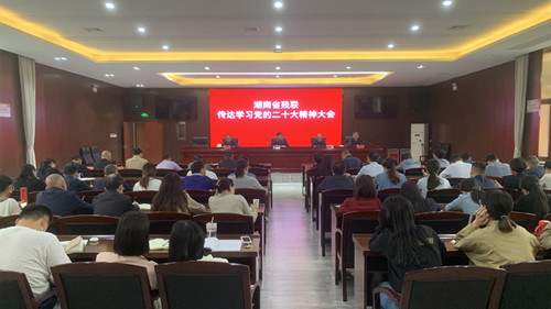 会上,肖红林理事长传达了省委召开的湖南省传达学习党的二十大精神大会精神,组织学习了习近平总书记在二十届中央政治局常委同中外记者见面时的讲话和二十大报告。会议指出,党的二十大是我国迈上全面建设社会主义现代化新征程、向第二个百年奋斗目标进军的关键时刻召开的一次十分重要的大会,是一次高举旗帜、凝聚力量、团结奋进的大会,具有重大现实意义和深远历史意义。习近平总书记在报告中特别提出“促进残疾人事业全面发展”,充分体现了以习近平同志为核心的党中央对残疾人事业的高度重视,对广大残疾人的深切关爱,也标志着残疾人事业从重点发展阶段进入全面发展时期。省残联系统党员干部要切实提高政治站位,深刻把握党的二十大取得的一系列重大政治、理论和实践成果,坚决把思想和行动统一到大会精神和党中央决策部署上来。