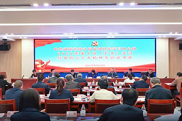 10月28日上午,湖南省统计局在25日上午党组(扩大)会议传达学习党的二十大精神基础上,举办局党组理论学习中心组(扩大)学习暨党的二十大精神专题读书班。党的二十大代表、局党组书记、局长刘文杰主持并作中心发言。