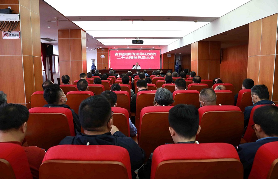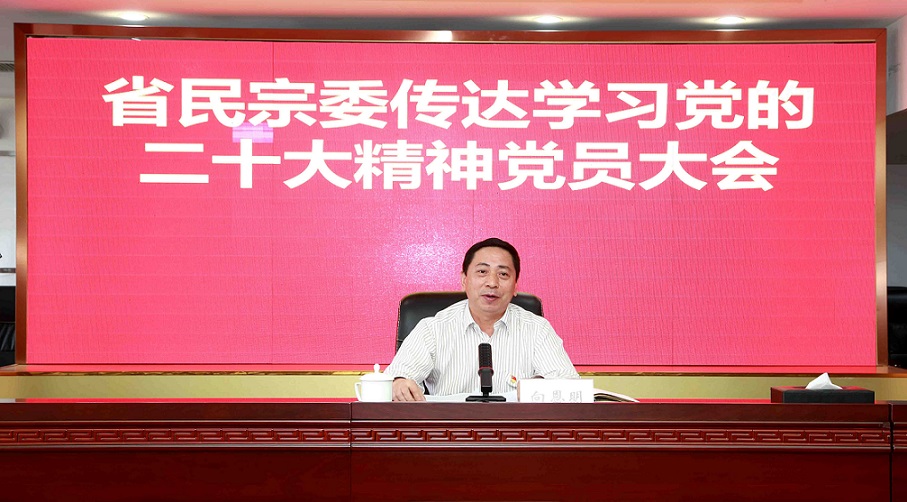 10月25日上午,省民宗委召开传达学习党的二十大精神党员会议。党的二十大代表,省民宗委党组书记、主任,省委统战部副部长(兼)向恩明传达了大会主要精神及习近平总书记重要讲话精神,介绍了大会盛况和我省代表参会情况。