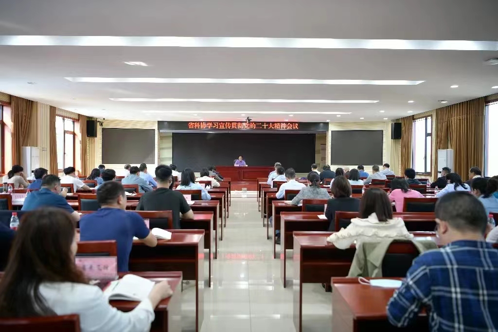 2022年10月25日,省科协召开学习宣传贯彻党的二十大精神会议。省科协党组书记、常务副主席王瑰曙主持会议,传达学习党的二十大和二十届一中全会精神、湖南省传达学习党的二十大精神大会精神以及省委常委会扩大会议精神,研究部署省科协系统学习宣传贯彻工作。省科协领导,机关各部室、各直属单位主要负责人,机关全体干部,以及省科协青少年科技中心、省科技咨询中心、湖南科技报刊有限责任公司、省展览馆相关人员参加会议。