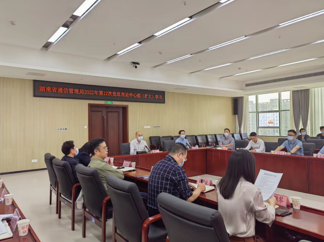10月25日上午,省通信管理局召开2022年第12次党组理论学习中心组(扩大)学习会,传达学习习近平总书记在第二十届中央政治局常委同中外记者见面时的重要讲话精神,工业和信息化部传达学习贯彻党的二十大精神大会、湖南省委传达学习党的二十大精神大会精神,以及中国共产党第二十次全国代表大会关于《中国共产党章程(修正案)》、关于第十九届中央纪律检查委员会工作报告的决议,对下一阶段学习宣传贯彻党的二十大精神作出部署。