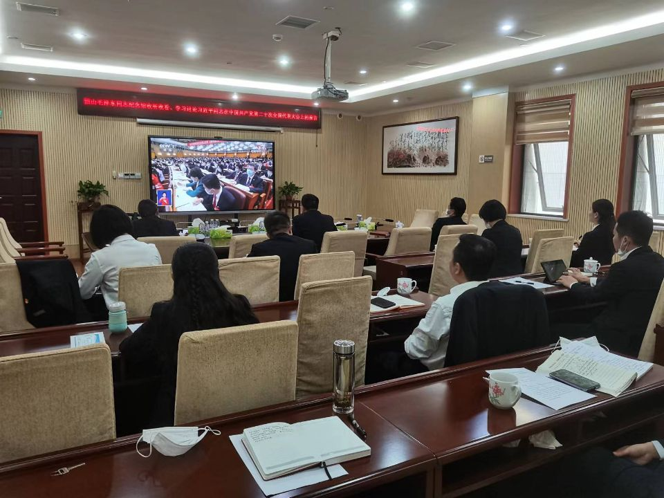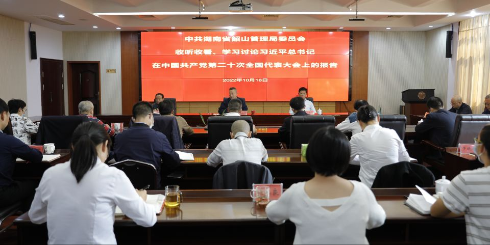 10月16日上午10时,在机关会议室,省韶山管理局组织机关四级调研员以上党员干部和局属单位主要负责人集中收看党的二十大开幕式盛况,聆听习近平总书记的报告。