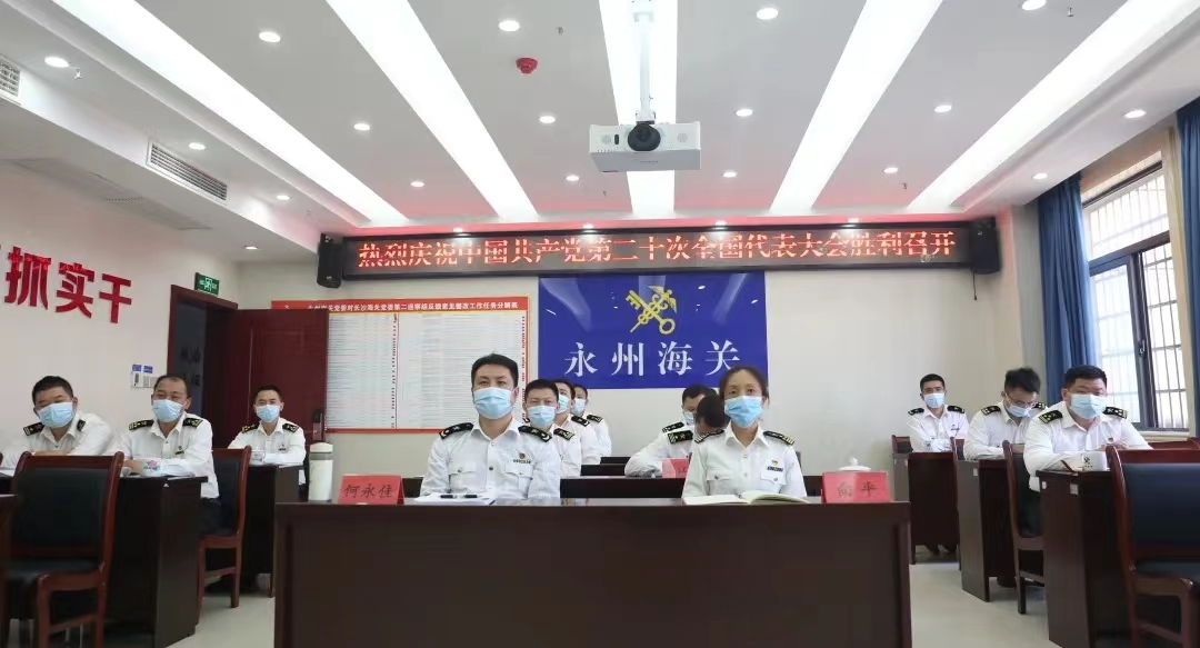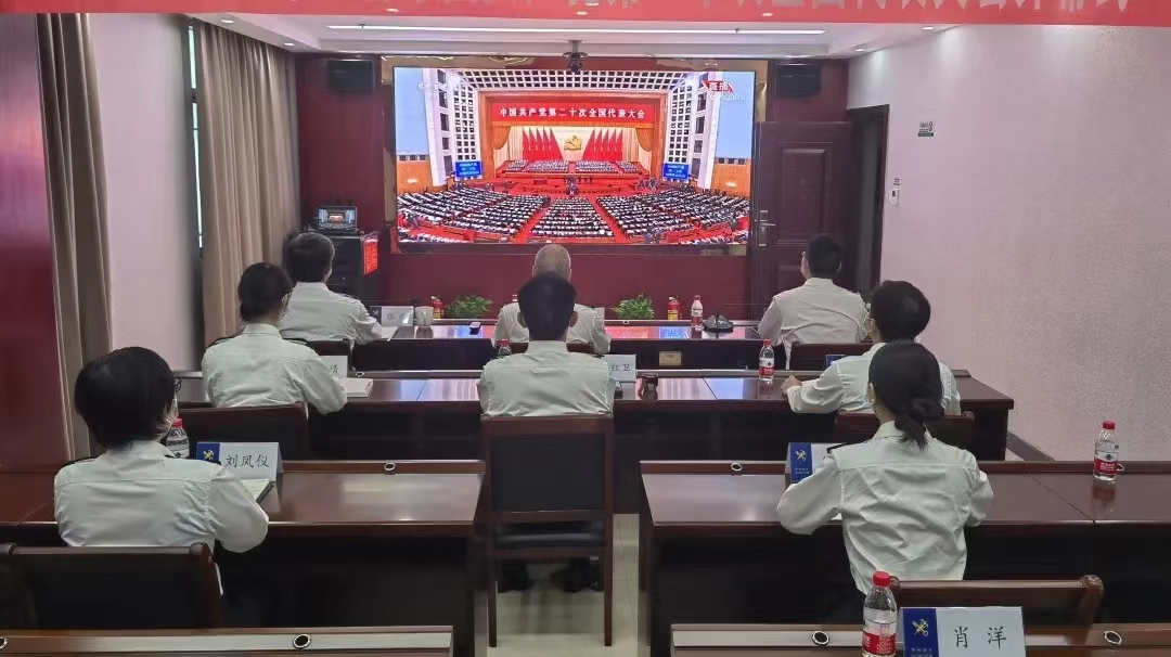 10月16日,长沙海关组织集中收看党的二十大开幕会。灵活采取“集中+分散”“线上+线下”等方式,集中组织处以上领导干部在关区各会场收看,以党支部或党小组为单位组织党员干部收看,封闭管理人员等自行组织收看。