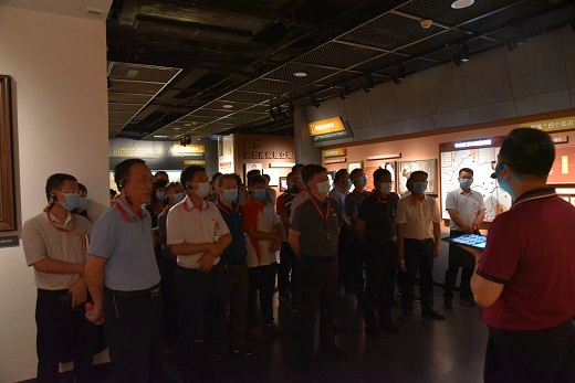 一进展厅,湖南省党性教育馆展标“百炼成钢”直击人心。在湖南省委党校中共党史教研部副教授黄建国的讲解下,全体党员先后参观了“掌握党性理论”“明确实践要求”“学习光辉典范”“吸取惨痛教训”“传承红色基因”等5个党性教育模块,一张张发黄的照片,一件件珍贵的历史文物,一个个感人肺腑的党史故事,大家仿佛又回到了那段难忘的峥嵘岁月,革命先辈们坚定的理想信念、强烈的爱国情怀、无私的奉献精神、顽强的意志品质,让全体党员肃然起敬、深受震撼。在一楼宣誓厅,大家庄严举起右手,在党委书记刘金富的带领下,重温入党誓词,在铿锵的誓言中回顾初心使命。