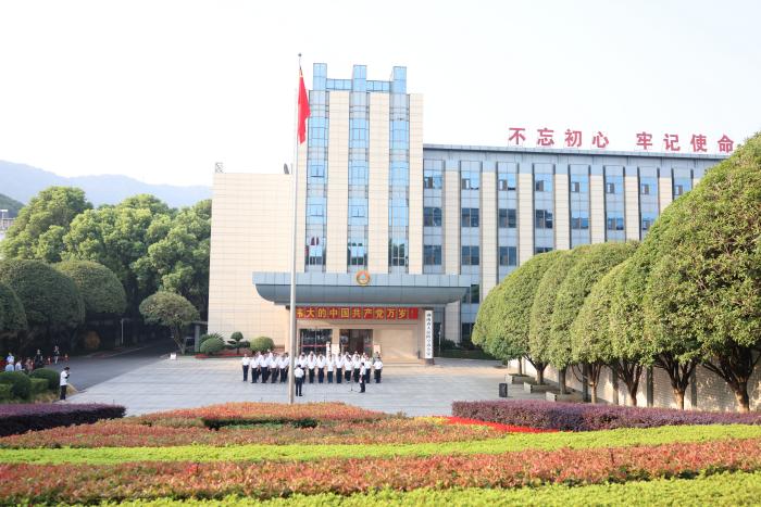 上午8时,3名英姿飒爽的护旗手迈着铿锵有力的步伐,护送国旗行进至升旗台。在雄壮激昂的国歌声中,五星红旗迎着朝阳冉冉升起。全体人员庄严肃立,满怀着对伟大祖国的无比崇敬和热爱之情,共同祝福伟大祖国繁荣昌盛。