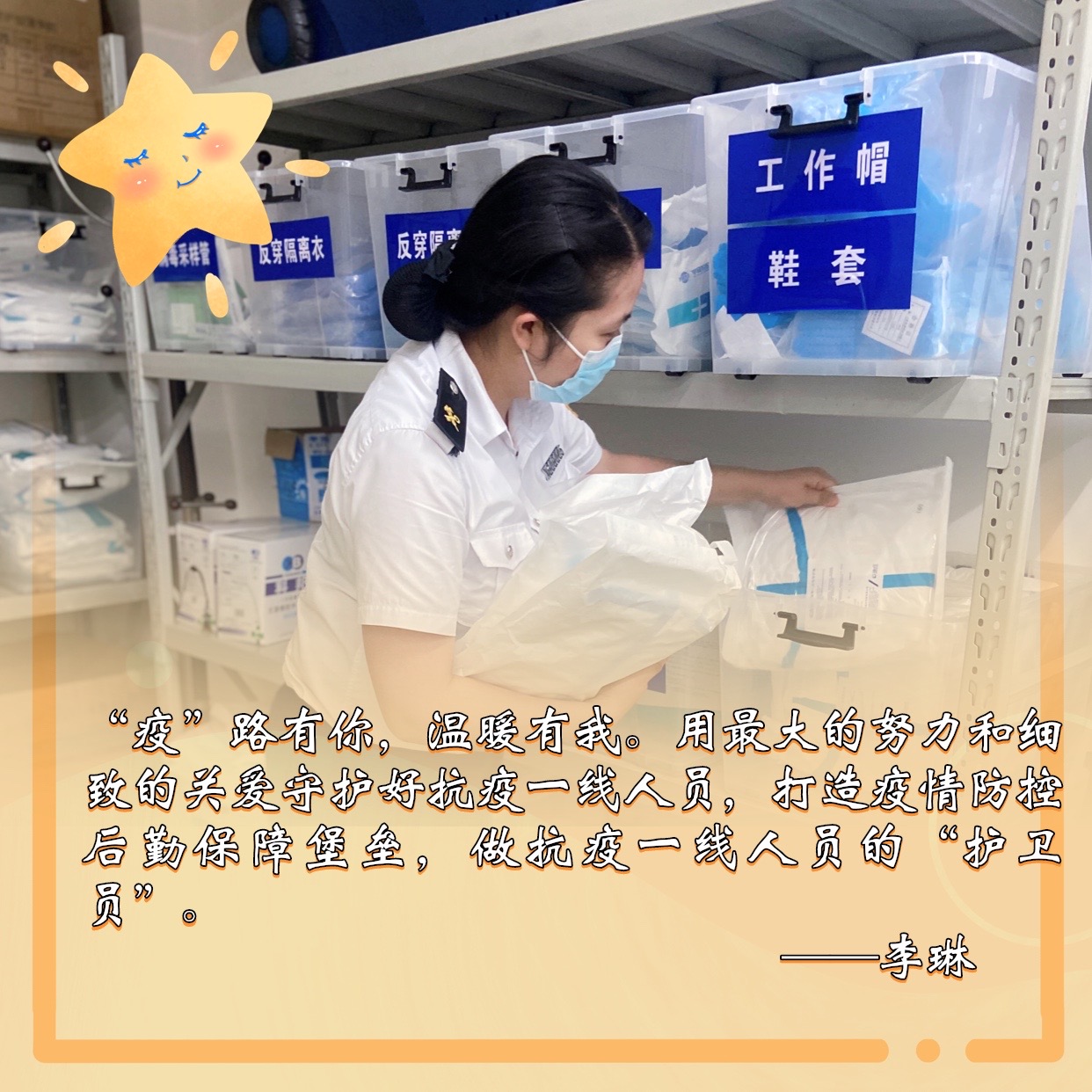 他们在口岸疫情防控一线的综合保障、后勤服务等岗位上兢兢业业,细心、热心、周到,为疫情防控工作提供坚强保障,获得广泛好评。