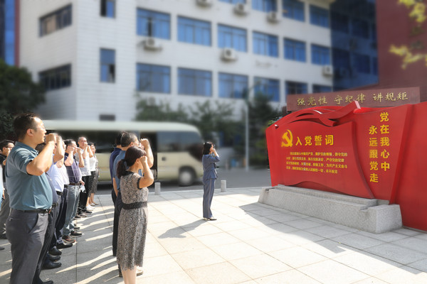 “我志愿加入中国共产党,拥护党的纲领,遵守党的章程……”在宣誓广场上,局党组书记、局长刘文杰领誓,全体参观人员面向鲜红的党旗,举起右手,庄严重温入党誓词,以铿锵誓言表达为党的事业奋斗终身的拳拳之心。