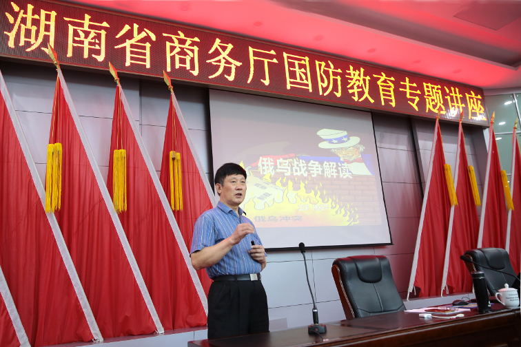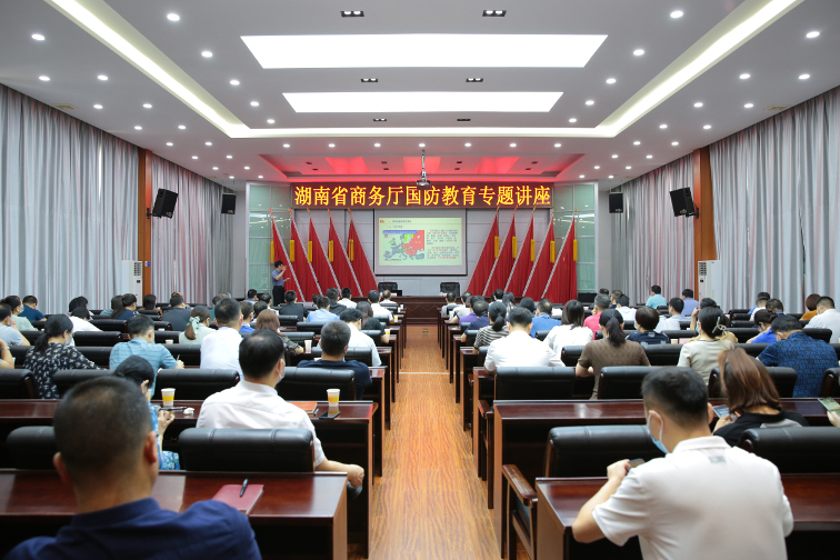 为进一步增强国防意识和总体国家安全观,不断提升干部职工准确识辩和把握国际形势的能力,根据年度工作安排,9月15日省商务厅举办国防教育专题讲座,邀请国防科技大学硕士研究生导师杨成平教授作国防教育专题授课辅导,省纪委监委派驻厅纪检监察组组长、厅党组成员石慧农主持讲座。在家厅领导、厅机关各处室(中心)及商务服务中心干部职工共100余人聆听讲座。