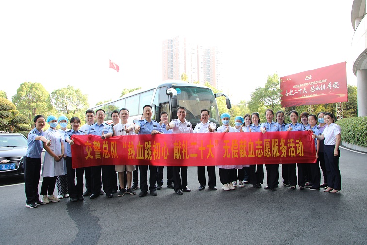 血是生命的源泉,爱是生命的希望!为缓解长沙市血液供应压力,保障医疗救治用血需要,也为进一步推动交警总队文明创建工作,大力弘扬人道主义精神,9月15日上午,交警总队在机关大院内组织了“热血践初心 献礼二十大”无偿献血活动。交警总队政治部主任夏葛桉出席活动,总队机关及直属系统民警、职工、辅警36人报名,21人成功献血,累计献血量8000毫升。抬臂、挽袖、握拳……简单的动作,组合成交警人的无私大爱;采血袋里缓缓流动的热血,汇聚着公安交警们的使命与担当。
