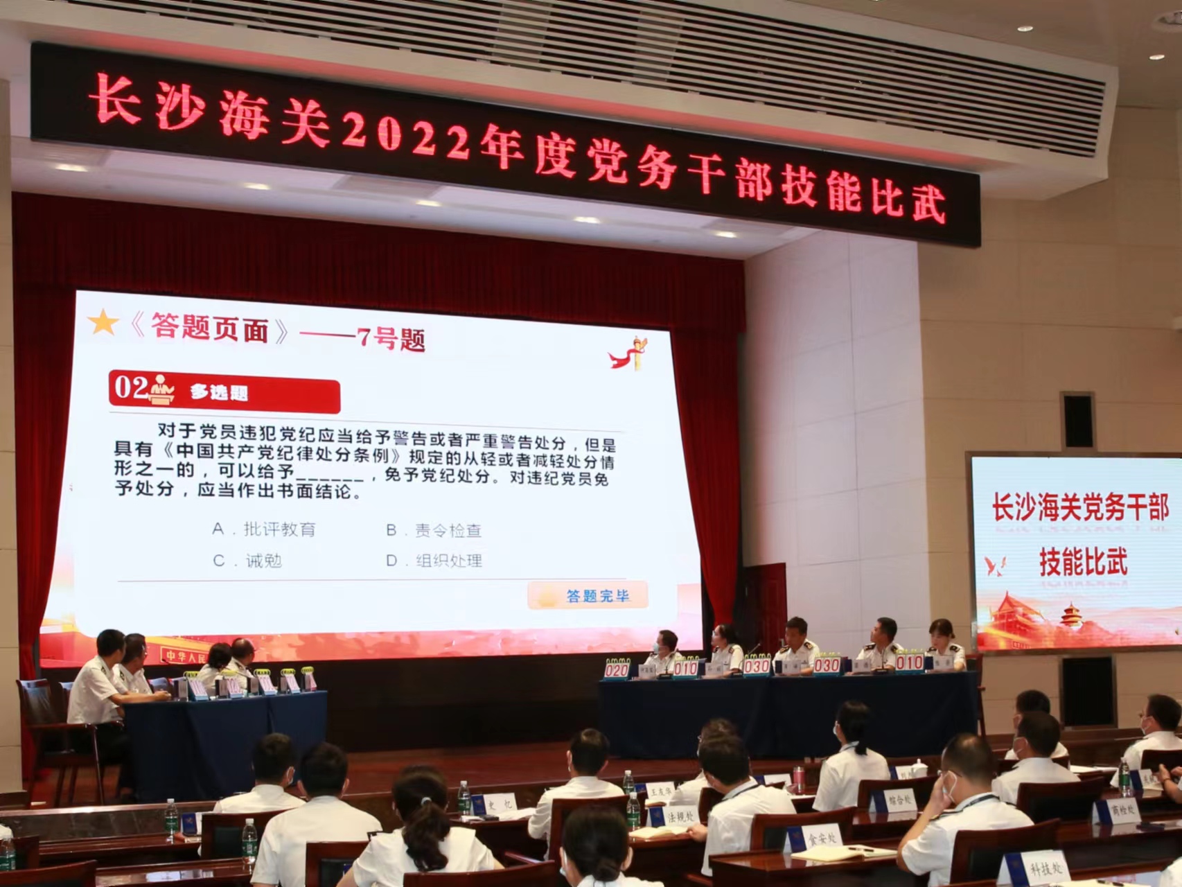 9月1日,经过“党务知识测试”“限时命题作文”“工作实绩考评”3轮次激烈比拼,长沙海关党务干部技能比武进入了最后的“现场答题”环节,10名选手入围岗位练兵“终极一战”。