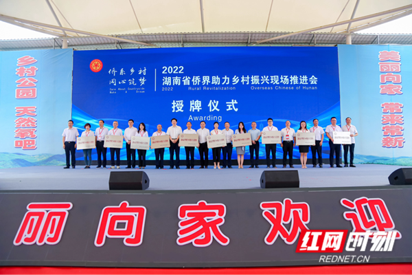 8月5日,“侨系乡村·同心筑梦”湖南省侨界助力乡村振兴现场推进会在邵阳市隆回县向家村举行。会议为长沙市岳麓区莲花乡村振兴产业园等20个基地授牌“湖南省侨界助力乡村振兴示范基地”。