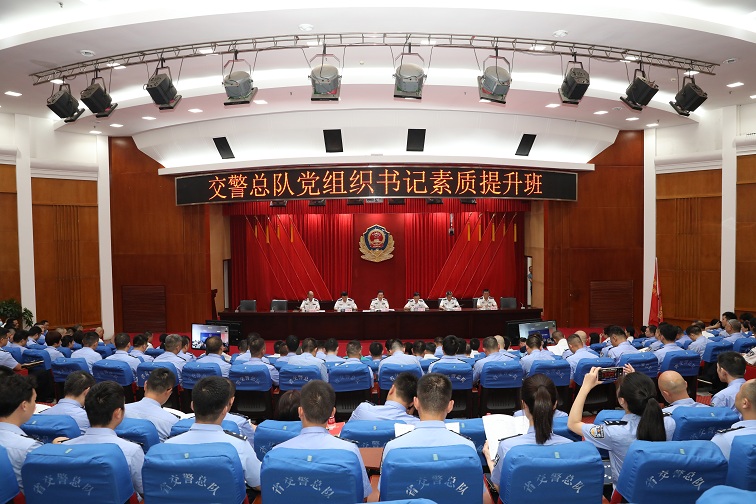 为深入学习贯彻习近平总书记在省部级主要领导干部“学习习近平总书记重要讲话精神,迎接党的二十大”专题研讨班开班式上的重要讲话精神,8月1日,总队举办机关及直属系统党组织书记素质提升班。交警总队党委书记、总队长蒋建湘为培训班全体学员讲授“开班第一课”。总队机关全体党员民警、职工和辅警在主会场参加学习,各高速交警支队、大队通过视频会议系统在线收看学习。