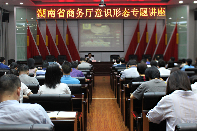 7月20日,省商务厅举行厅党组理论学习中心组(扩大)2022年第6次集中学习,深入学习习近平总书记关于维护意识形态安全的重要论述,邀请湖南省委宣传部意识形态工作处曾明副处长进行意识形态专题授课辅导,组织集中学习《中国共产党宣传工作简史》。