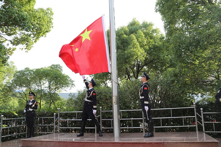 上午7时许,总队机关全体民警身着警礼服,在办公楼前整齐列队,共同参加升国旗仪式。在雄壮的国歌声中五星红旗冉冉升起,全体民警面向国旗敬礼。