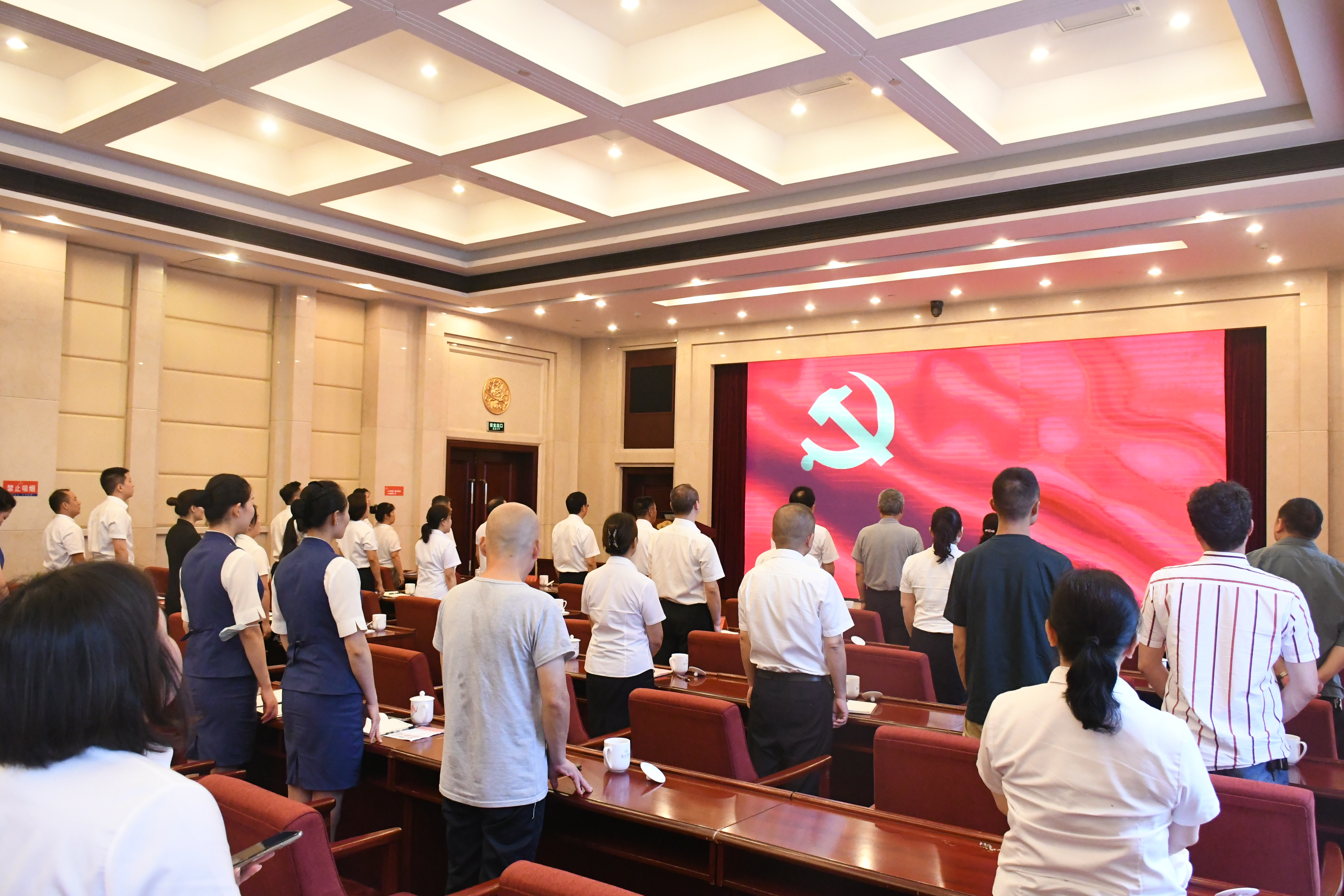 接下来,全体党员奏唱《国际歌》,铿锵的歌声不仅响彻会场,更把歌曲的深刻意义渗入每一位党员的心里。