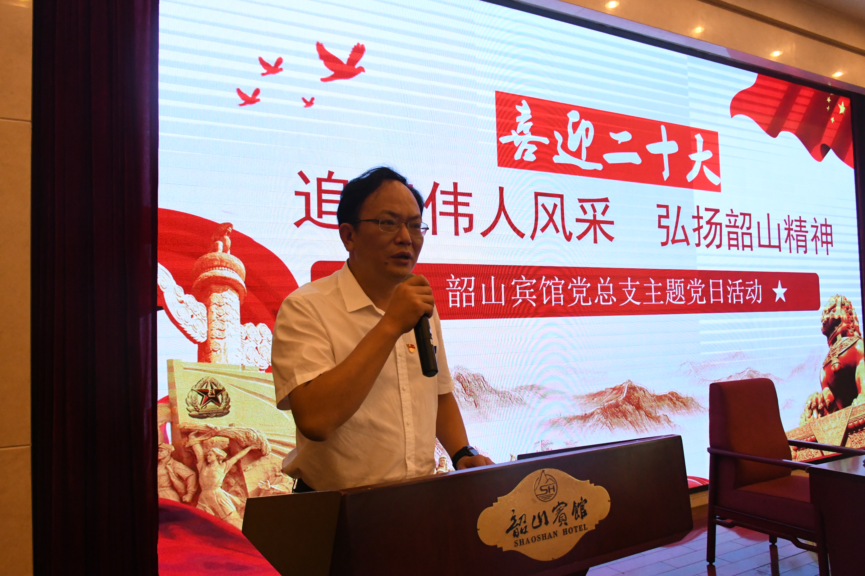 为迎接党的二十大,贯彻落实《关于迎接党的二十大胜利召开组织开展“强国复兴有我”群众性主题宣传教育活动的通知》精神,同时结合纪念毛主席回乡63周年活动。6月30日下午,韶山宾馆党总支以“追忆伟人风采,弘扬韶山精神”为主题,在六号楼大会议室开展党日活动。馆领导、全馆党员、退支部支部党员代表、团支部成员参加活动。本次活动还邀请原湖南省韶山管理二级巡视员谭逻松进行现场授课。