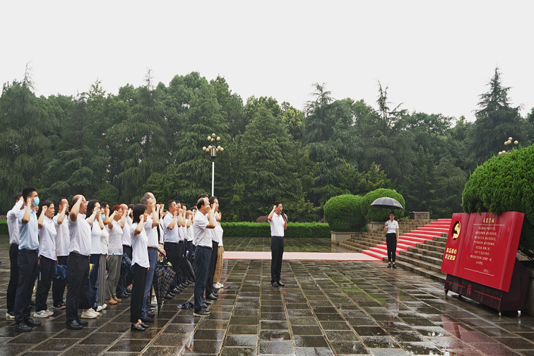 在铜像广场,曾智夫主任领誓,全体党员高举右手,庄严宣誓,重温入党誓词,表达为党的事业奋斗终身的决心。
