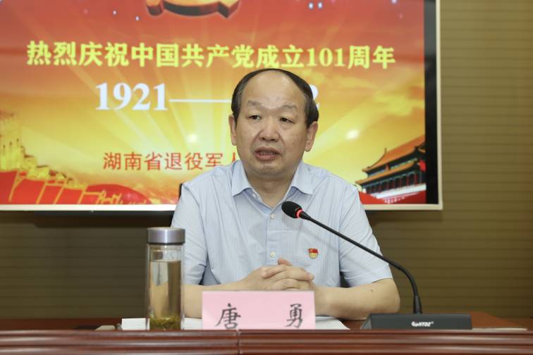 唐勇以“弘扬伟大建党精神 走好崇军赶考之路”为主题讲主题党课。他指出,“坚持真理、坚守理想,践行初心、担当使命,不怕牺牲、英勇斗争,对党忠诚、不负人民”的伟大建党精神包含着我们党的成功密码,体现了中国共产党人远大的理想追求、坚定的奋斗目标、顽强的斗争意志、忠诚的政治品格,激励着一代代中国共产党人前赴后继、英勇奋斗。他强调,全省退役军人事务系统要深入学习贯彻习近平新时代中国特色社会主义思想,深入学习领会党的十九届六中全会精神,深刻感悟伟大建党精神科学内涵,进一步从我们党百年多来奋斗中看清楚过去我们为什么能够成功、弄明白未来我们怎样才能继续成功,激励全系统党员干部在新时代崇军赶考路上更加坚定、更加自觉地坚守初心使命、开创美好未来;要坚持以习近平新时代中国特色社会主义思想为指导,忠诚拥护“两个确立”、坚决做到“两个维护”,大力弘扬伟大建党精神,勇担“维护军人军属合法权益,让军人成为全社会尊崇的职业”的时代使命,真心念好“忠、公、实、廉”四字诀,以“闯”的精神、“创”的劲头、“干”的作风,推动全省退役军人工作高质量发展,为全面落实“三高四新”战略定位和使命任务、建设社会主义现代化新湖南作出更大贡献,以实干实绩迎接党的二十大胜利召开!