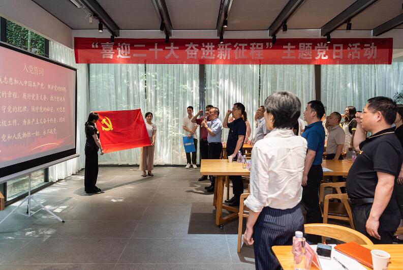 6月14日下午,湖南出版投资控股集团总部机关第一党支部深入基层单位,与湖南美术社党总支第二支部联合开展“喜迎二十大 奋进新征程”主题党日活动。全体党员重温入党誓词,集体学习了习近平总书记在庆祝中国共产主义青年团成立100周年大会上的重要讲话精神。集团党委副书记、副董事长、总编辑、总经理杨壮围绕“中国共产党与传统文化”讲授专题党课,集团党委副书记、董事、副总编辑,集团机关党委书记胡建勇出席活动。