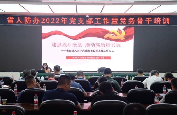 为加强新时代机关党的建设,不断提升党支部工作质量,锻造“四强”党支部。6月9日,省人防办组织党支部工作暨党务骨干培训,邀请省直机关工委基层组织建设指导部部长黄敏指导授课,办党组成员、副主任谢晓清主持并讲话,在家办领导、机关和直属单位全体党员以及老干一、二支部书记参加。