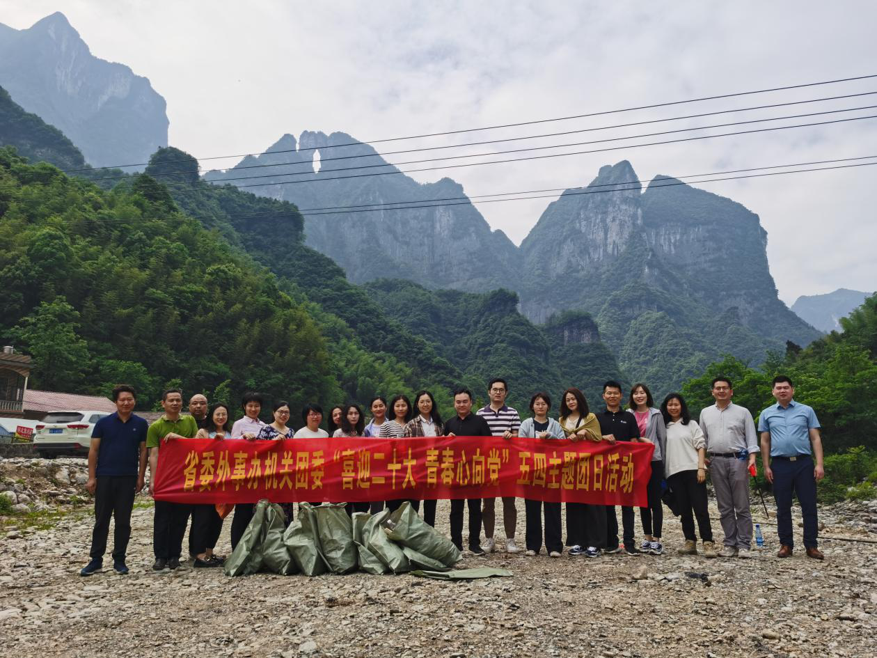 百年风华正茂,青春奋进远航。5月24日至25日,省委外事办机关团委组织机关青年干部赴我办乡村振兴驻点帮扶村——张家界市仙人溪村开展“喜迎二十大 青春心向党”五四主题团日活动,参加乡村振兴专场文艺演出,开展“保护母亲河水源地”志愿服务活动和乡村振兴调研。活动旨在深入学习习近平总书记在庆祝中国共产主义青年团建团100周年大会上的讲话精神和湖南省庆祝中国共产主义青年团成立100周年座谈会精神,引导外办青年干部赓续精神血脉,建功新时代。