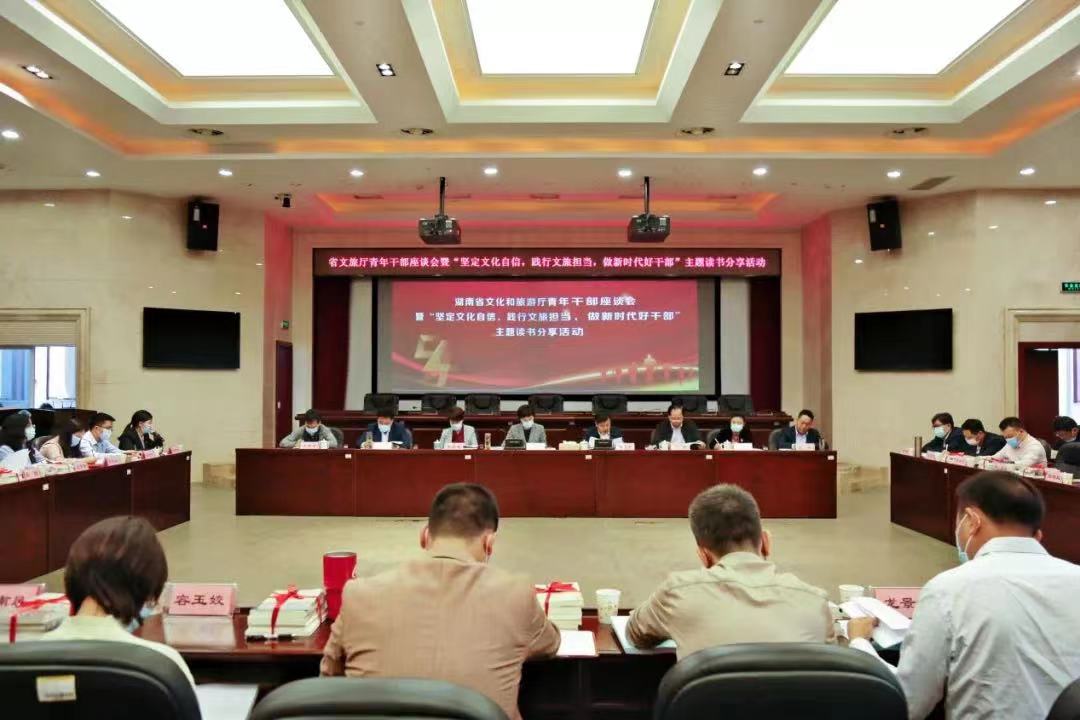 为贯彻落实习近平总书记在庆祝中国共产主义青年团成立100周年大会上重要讲话精神和湖南省庆祝中国共产主义青年团成立100周年座谈会精神,5月13日上午,湖南省文化和旅游厅举办青年干部座谈会暨“坚定文化自信,践行文旅担当 做新时代好干部”主题读书分享活动。省委宣传部副部长,厅党组书记、厅长李爱武出席会议并讲话,向青年干部们分享自身成长及工作经历中收获的经验及感悟,鼓励青年干部们再接再厉,奋力拼搏,创造新业绩,作出新贡献。
