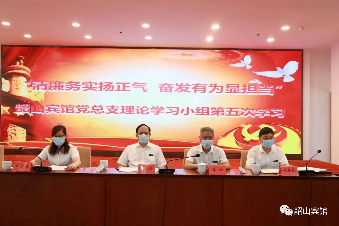 5月9日上午,韶山宾馆党总支理论小组在三号楼大会议室召开第五次学习会议,本次学习以“清廉务实扬正气、奋发有为显担当”为主题,采取个人自学、集中学习和研讨发言的形式开展。馆领导班子及全馆副科级以上人员参与学习讨论。