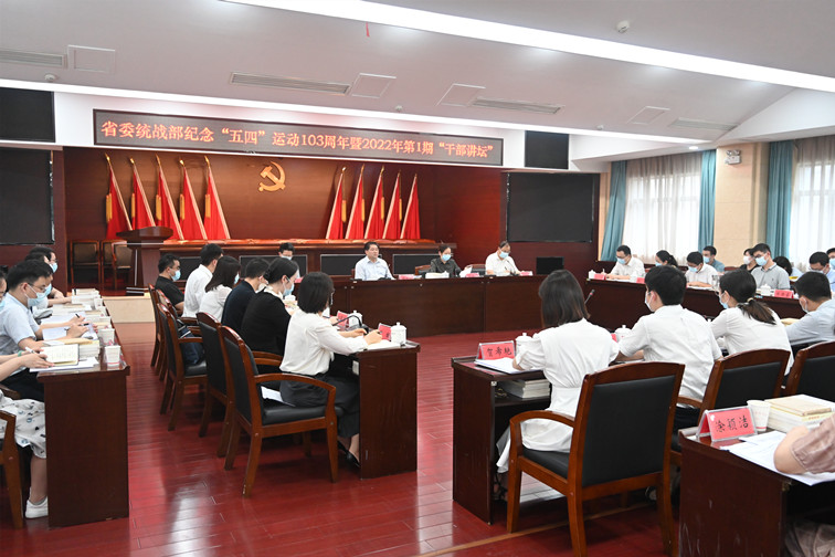 4月27日,省委统战部举办纪念“五四”运动103周年暨2022年第1期“干部讲坛”(青年专场),深入学习贯彻习近平总书记在中央党校(国家行政学院)中青年干部培训班的重要讲话以及致首届全民阅读大会举办的贺信精神及重要讲话指示精神,开展交流研讨。省委常委、省委统战部部长隋忠诚出席。