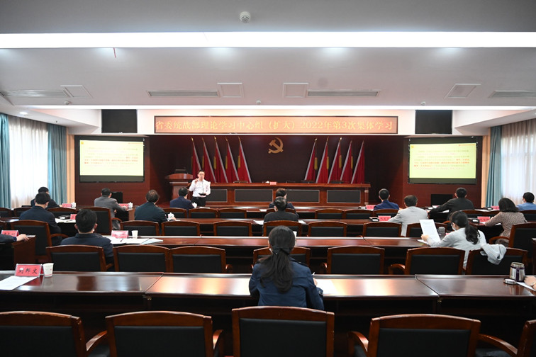 近日,省委统战部理论学习中心组(扩大)举行2022年第3次集体学习,会议邀请省委党校副教授周树辉以《深刻把握“两个确立”的决定性意义 坚决做到“两个维护”》为题作辅导报告。省委常委、省委统战部部长隋忠诚主持并讲话。