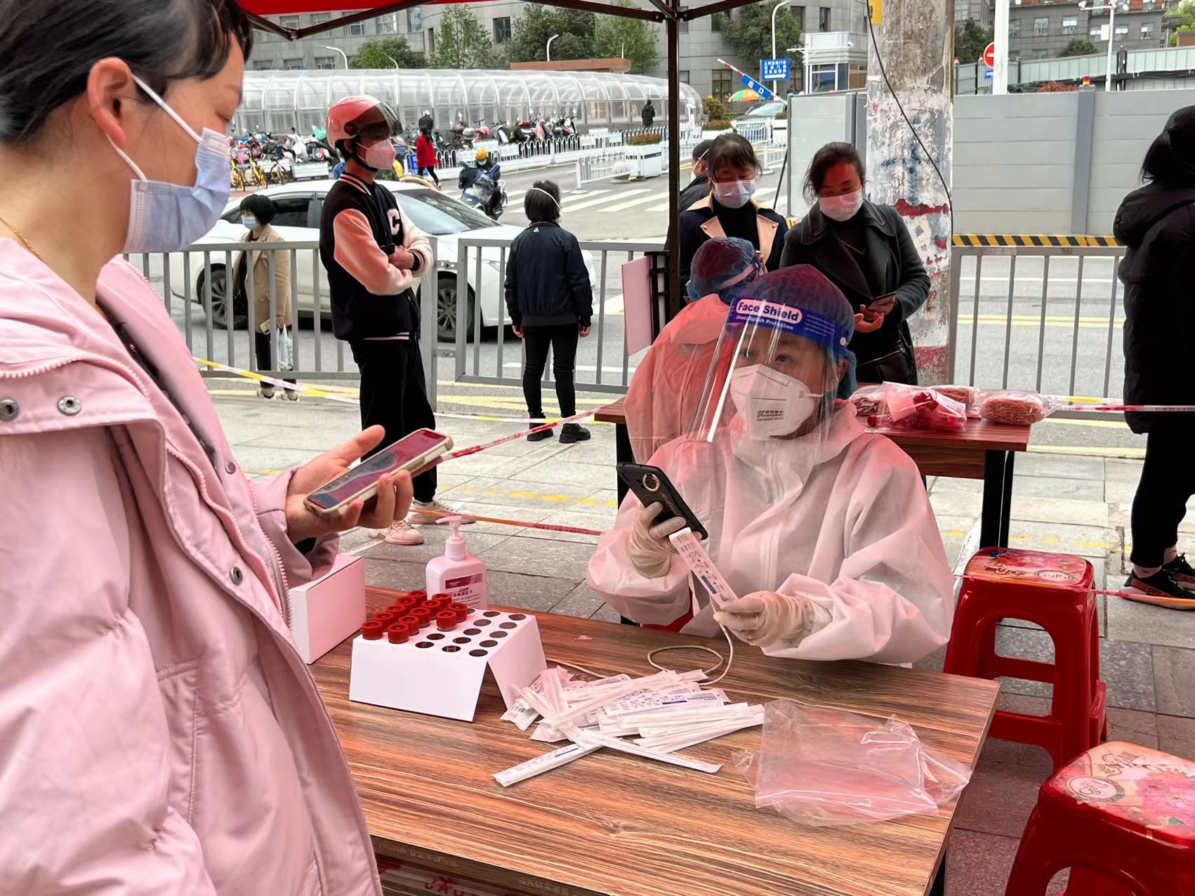 主动请战,全员参与社区核酸检测志愿服务。疫情防控没有局外人,更没有旁观者。疫情当下,每个人都身处其中,中心所有干部职工始终把人民利益、集体利益放在首位,主动扛牢政治责任,冲锋在前,靠前指挥,主动联系上麻园岭社区,积极参与社区核酸检测志愿服务,保证工作落地、责任到人,为疫情防控做一些力所能及的事情。从3月25日至4月1日,共12名中心志愿者参与,3人一班,分为4班,全面参与了多轮核酸检测任务。工作内容包括维持秩序、录入核酸检测信息、引导侯检群众、查验健康码、测量体温等。工作地点包括湘雅医学院老干楼和湘雅口腔医院门口等,经常晚上12点多还在检测一线,冒着风雨也从不叫苦叫累,中心志愿者的工作作风得到了社区同志的一致好评。