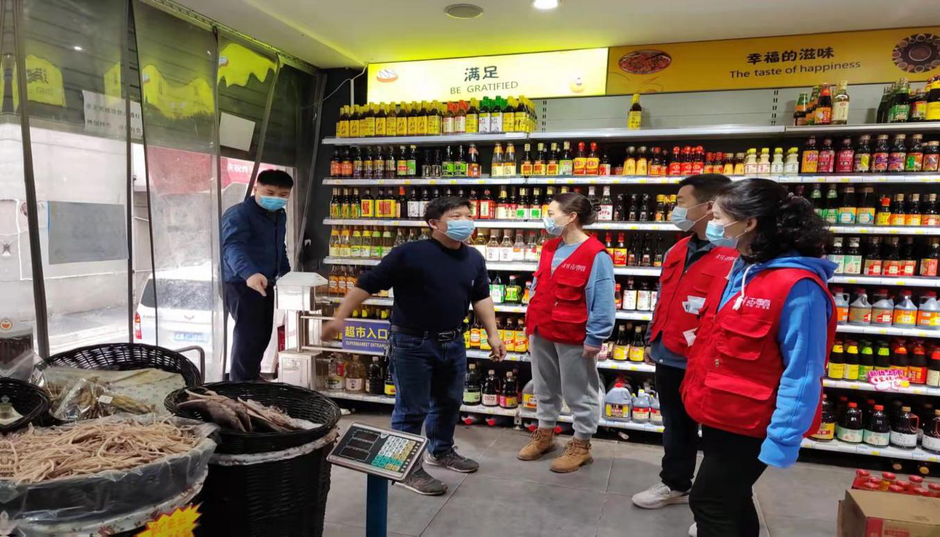 4月2日,负责协助人民新村社区疫情防控工作的3名党员干部,与社区工作者一起对辖区企事业单位和五小门店进行防疫检查。在一家规模较大的超市内,他们发现该超市装卸货物的通道处于开放状态,存在人员进出管控不到位的隐患,当即要求超市负责人当场整改到位。随后,他们继续开展走访,查看各经营场所是否按要求在入口处张贴“场所码”标识,顾客进入经营场所是否佩戴好口罩、扫场所码。全天共走访社区内超市、餐饮、宾馆等各类场所共计70余家。