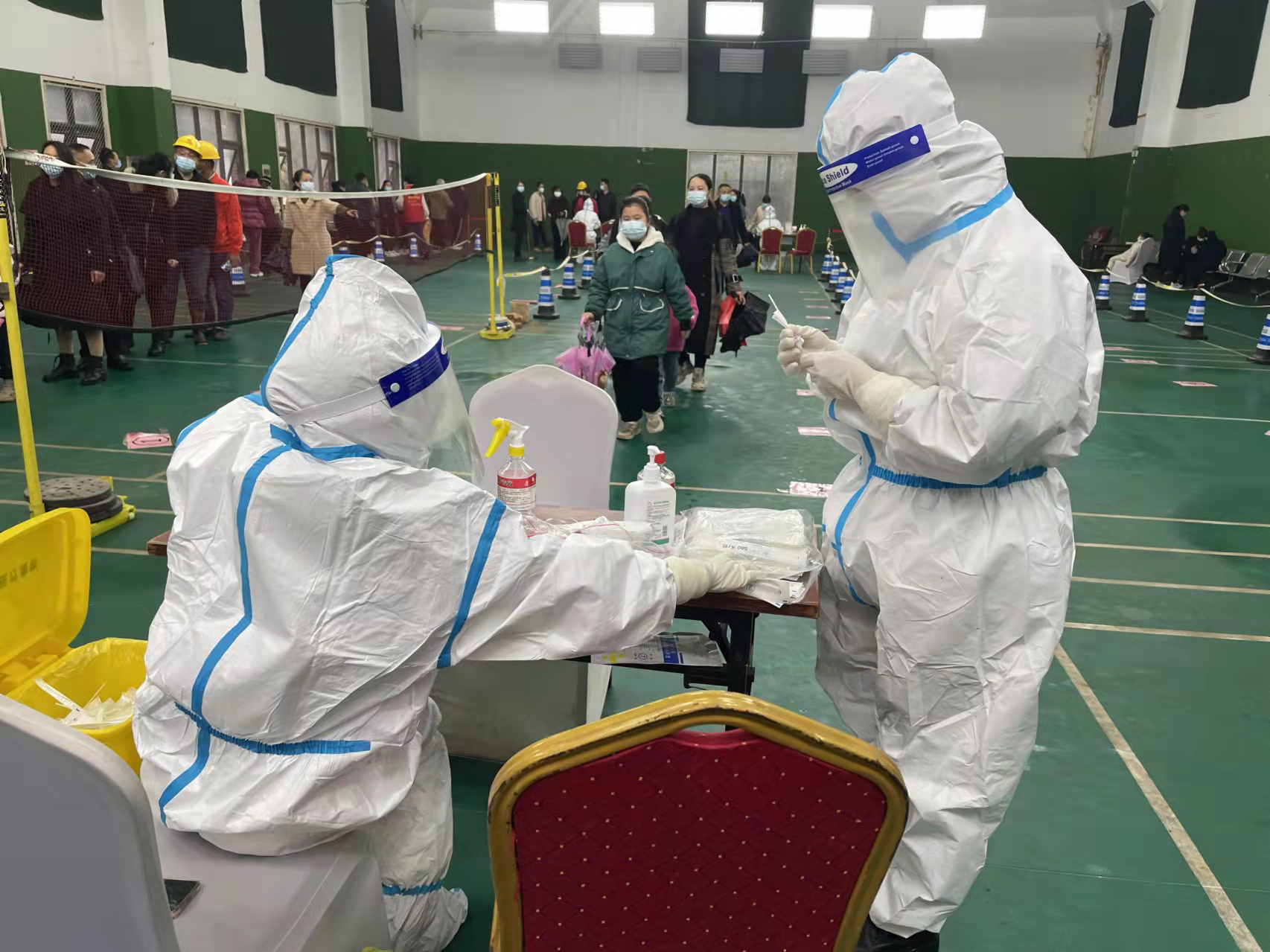 县财政局第三党支部入党积极分子刘莎积极报名,下沉城区核酸检测点配合医护人员开展核酸检测。第一次穿着防护服连续工作4个小时,闷热难耐,防护罩笼罩着的雾气不断形成水珠往下滴,但是她不敢喝水,不敢上厕所,为的就是不轻易浪费一套防护服,整个上午就在三个医护人员之间做重复的衔接工作,她用自己的汗水中传递着疫情防控正能量。