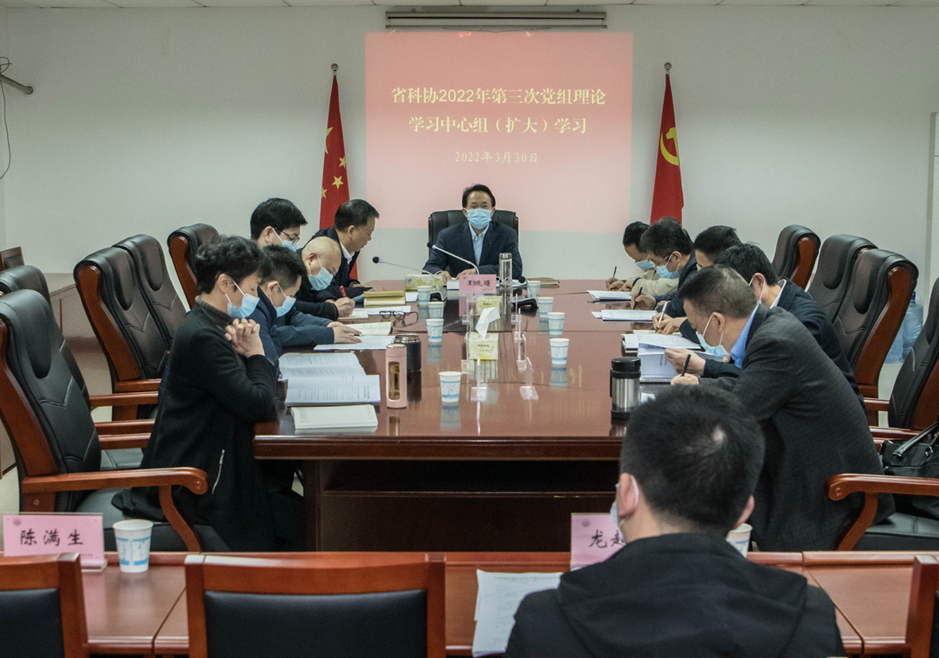 3月30日 ,省科协开展2022年第三次党组理论学习中心组(扩大)学习,集中学习习近平总书记关于中国式现代化道路和稳步促进全体人民共同富裕的重要论述。省科协党组书记、常务副主席王瑰曙主持学习,协会领导、机关各部室和各直属单位主要负责人参加学习并开展研讨交流。